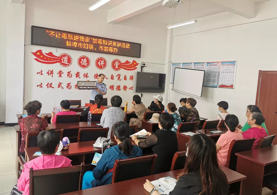 為迎接第35個(gè)國際禁毒日的到來,進(jìn)一步增強(qiáng)城市居民識(shí)毒、拒毒、防毒意識(shí)與能力,6月16日下午,蚌埠市婦聯(lián)邀請(qǐng)市公安局禁毒支隊(duì)大隊(duì)長、一級(jí)警長高峰深入禹會(huì)區(qū)緯四街道銀河社區(qū)開展“不讓毒品進(jìn)我家”禁毒宣傳知識(shí)專題講座。