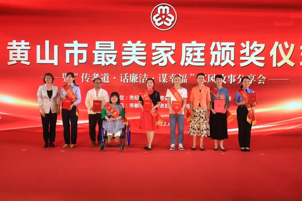 6月23日下午,黃山市最美家庭頒獎(jiǎng)儀式暨“傳孝道·話廉潔·謀幸?!奔绎L(fēng)故事分享會(huì)在市城市展示館舉行。市政協(xié)主席路海燕,省婦聯(lián)黨組成員、副主席蔡小莉,市委常委、市紀(jì)委書(shū)記、市監(jiān)委主任羅建華,市人大常委會(huì)副主任程紅,副市長(zhǎng)劉力出席頒獎(jiǎng)儀式并為獲獎(jiǎng)代表頒獎(jiǎng)。